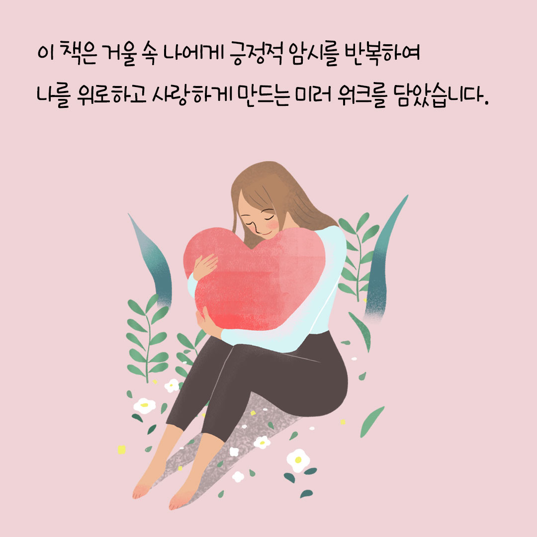 이 책은 거울 속 나에게 긍정적 암시를 반복하여 나를 위로하고 사랑하게 만드는 미러 워크를 담아냈습니다.