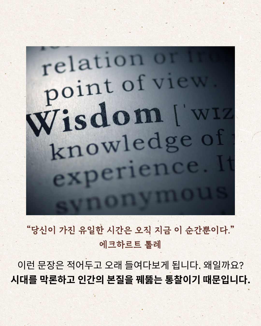 장자와 에픽테토스부터 칼릴 지브란, 간디, 마더 테레사, 틱낫한, 에크하르트 톨레, 시몬 베유, 돈 미겔 루이스에 이르기까지 동서양을 대표하는 사상가들의 핵심 메시지를 간결하면서도 깊이 있게 전달한다.📖